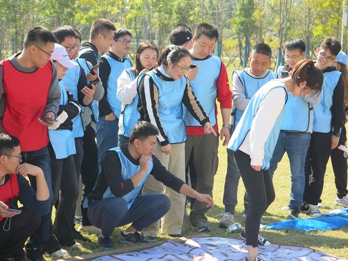 个性化破冰热死后,,,,,气氛活跃起劲,,,,,拓展也正式拉开了帷幕。。员工按站队被随机分成四小队两大队,,,,,并设计了队名、口号、队形。。随后分红蓝两队开展了“勇闯雷阵”的挑战,,,,,在教练“请继续”和“有雷,,,,,原路退回”的口令中重复演练,,,,,立异先行,,,,,勇敢挑战,,,,,以突破格子阵和条框的头脑定式,,,,,队员们一直优化资源设置、默契分工、罗致履历、寻找高效致胜的要领,,,,,作育了团队统筹决议意识和应急处置惩罚能力。。