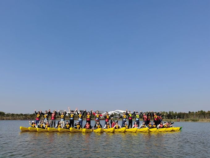 下昼,,,,,各队队员在专业教学后,,,,,沐浴在日光和微风中,,,,,“扬帆起航”完成了皮筏艇接力和连排竞赛,,,,,一项集速率、耐力与协作并举的水上运动,,,,,释放了事情压力,,,,,也增强了团队凝聚力。。
